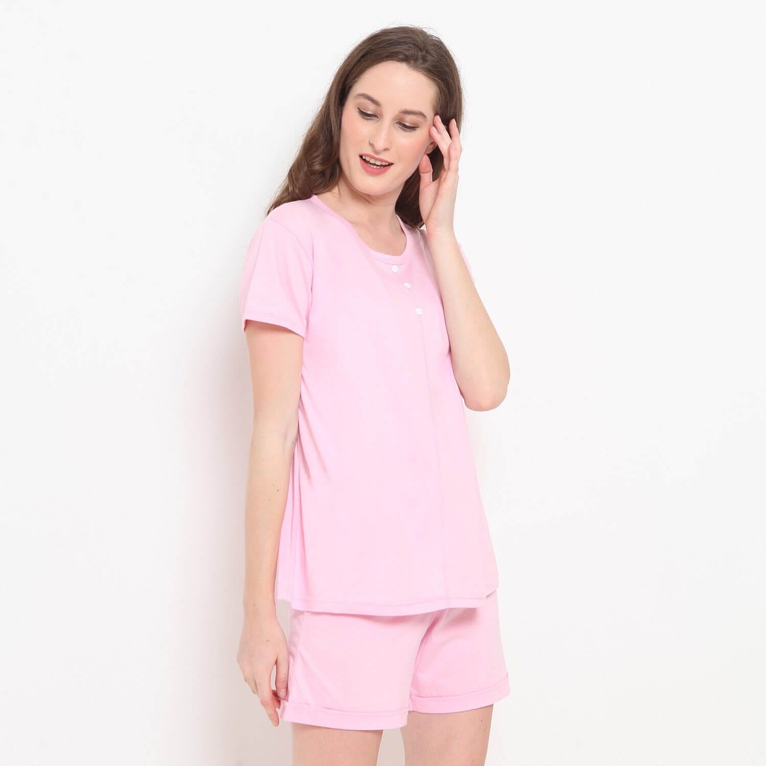 Sleepwear wanita dengan desain relaxed fit lengan pendek yang sangat nyaman dikenakan untuk beristirahat. Terbuat dari bahan cotton dan memiliki model polos dengan kerah bulat. Tersedia banyak pilihan warna seperti pink, hijau tua, peach, ungu, biru, kuning, hijau, biru tua.